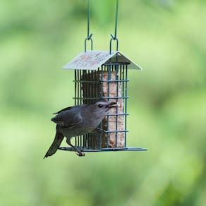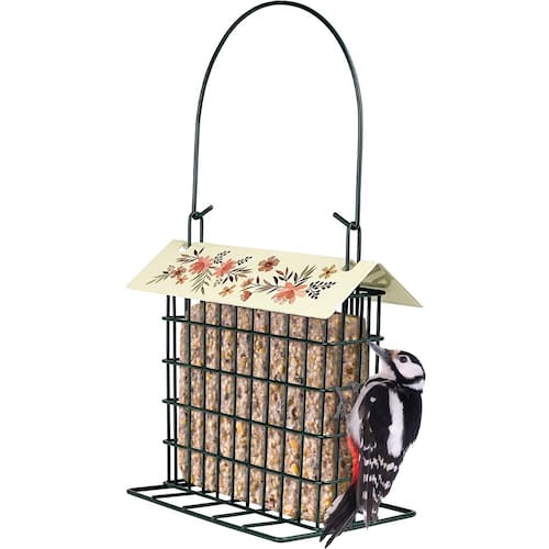 Wild Wings Alimentador decorativo de gaiola de sebo de metal para decoração ao ar livre alimentadores de pássaros selvagens, capacidade para 1 bolo de sebo, alimentador de sebo suspenso, preto