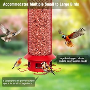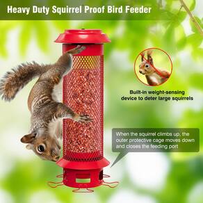 O alimentador de pássaros Wellavich à prova de esquilos, 5 poleiros e portas de alimentação fornecem aos pássaros um espaço de alimentação amplo e confortável, e a bandeja inferior removível manualmente é mais fácil de limpar profundamente do que comedouros de pássaros comuns. Este alimentador de pássaros é o melhor presente para pai, mãe, avô, avó em aniversários, Ação de Graças, Natal e Ano Novo. Pássaros alvo: Cardinals, Jays, Bluebirds, Finch, Chickadees, Titmice, Nuthatches, Grosbeaks, Sparrows, etc. Material: metal, plástico Tamanho: 15 cm C x 15 cm L x 40 cm A Peso: 1,1 kg Capacidade: 1,8 kg Cor: Vermelho Sementes aplicáveis: sementes de girassol de óleo preto, sementes de cártamo, grãos de amendoim, milho rachado, nozes rachadas, etc. Lista de embalagem: 1 alimentador de pássaros, 1 x manual de instruções (sem garantia de versão em português). Serviço pós-venda: Se você encontrar algum problema ao usar este alimentador de pássaros, , forneceremos um serviço pós-venda rápido e 100% satisfatório. - Estrutura à prova de esquilos: o alimentador de pássaros Wellavich à prova de esquilos tem uma mola sensível ao peso integrada. Quando a carga externa da gaiola excede o limite, ela cairá e fecha a porta de alimentação. Isso é muito eficaz para esquilos grandes, mas não será acionado mesmo se vários pássaros pousarem ao mesmo tempo. - Amplo espaço de empoleiramento: os 5 poleiros alargados e estendidos na parte inferior do alimentador de pássaros fornecem aos pássaros um espaço extra grande de 360°, que pode acomodar vários pássaros ao mesmo tempo. Aves pequenas e médias podem comer confortavelmente. - Fácil de encher e limpar: a boca larga na parte superior evita que as sementes caiam durante o enchimento. A bandeja exclusiva removível manualmente na parte inferior facilita a limpeza. Esta estrutura também evita que as sementes sejam desperdiçadas e pareçam bagunçadas. - Tubo de capacidade extra grande: o tubo para enchimento de sementes é feito de plástico altamente transparente e durável, e as sementes restantes podem ser vistas claramente do lado de fora. Pode ser preenchido com sementes de girassol de óleo preto, sementes de cártamo, grãos de amendoim, milho rachado, nozes rachadas, painço, etc. - Resistente e à prova de intempéries: o corpo principal deste alimentador de pássaros resistente é feito de metal com revestimento à prova de ferrugem, e a malha de metal pode proteger o tubo interno de danos aos animais. A bandeja inferior tem orifícios de drenagem para manter as sementes secas e pode ser pendurada ao ar livre, independentemente das estações chuvosas ou secas.
