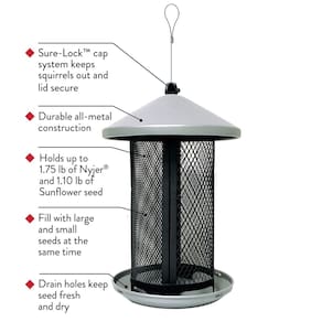 - Bandeja circular de sementes e superfície de malha atrai pássaros agarrados e empoleirados