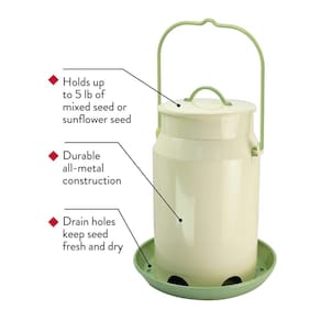 - Bandeja de sementes limita o desperdício e promove alimentação de 360 graus