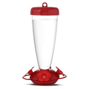 Alimentar beija-flores nunca foi tão fácil do que com o alimentador de beija-flor Perky-Pet top-fill! A tecnologia patenteada de enchimento superior permite que você encha facilmente este alimentador simplesmente removendo a tampa e despejando 680 g de néctar. Além disso, a espaçosa abertura de boca larga ajuda a evitar sujeira indesejada e derramamentos enquanto você derrama. Este alimentador vem completo com quatro portas de alimentação em forma de flor vermelha para atrair beija-flores enquanto passam por perto. As portas são macias e flexíveis, dando a elas uma sensação mais realista que seus hummers certamente vão adorar. Ao contrário da abertura estreita disponível nos alimentadores de enchimento inferior, a boca larga do enchimento superior torna o alimentador muito mais fácil de limpar. Além disso, o alimentador pode ser desmontado completamente para que você possa limpar todos os locais de difícil acesso. Quando a limpeza é menos trabalhosa, você pode ter certeza de que seus hummers sempre terão acesso a néctar fresco. Além disso, o reservatório de plástico transparente permite que você monitore os níveis de néctar rapidamente, para que você nunca acabe. ; ; Nome da marca: Perky-Pet Tipo de pássaro: beija-flor Capacidade: 680 g Material: Plástico Tipo de produto: Alimentador de néctar Número de estações de alimentação: 4 portas Protetor de esquilo: Não Altura: 27,3 cm. Cor: Fosso de formiga transparente/vermelha: Sim Diâmetro: 12,7 cm. Tipo de montagem: pendurado