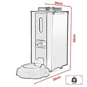 Especificações do alimentador: Altura: 45cm Largura: 20cm Profundidade: 25cm Peso liquido: 3,100kg Capacidade reservatório em volume: 7,0 Litros Capacidade reservatório em Peso: entre 4,0 kgs. Voltagem: 110volts