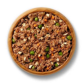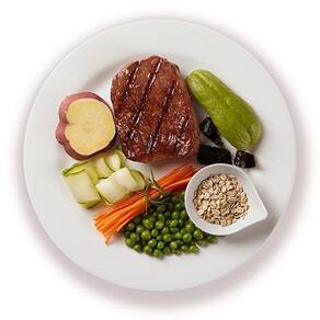 Composição: Carne bovina, coração bovino, língua bovina, ovos, chuchu, abobrinha, cenoura, ervilhas, batata doce, aveia em flocos, óleo de girassol, lecitina de soja não transgênica, algas, carbonato de cálcio, fosfato bicálcico, goma xantana, sal, levedura seca de cervejaria, taurina, vitaminas (A, D3, E, K3, B1, B2, B6, B12, C, niacina, ácido pantotênico, ácido fólico, colina, biotina) e minerais (zinco, ferro, selênio, cobre, manganês, iodo).