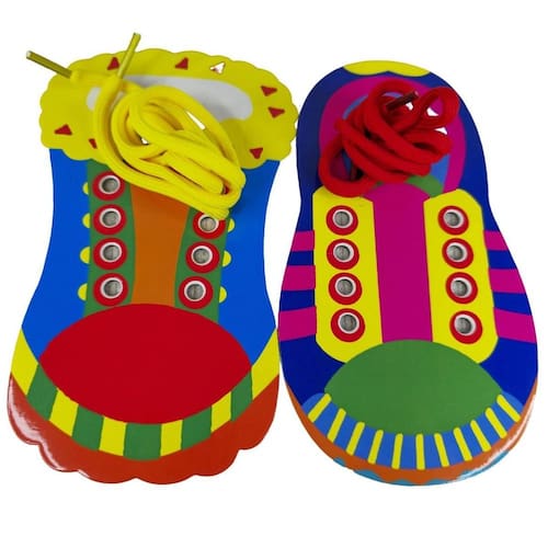 Essa atividade de enfiar cadarço funciona como uma introdução ao movimento de costura, fortalecendo os pequenos músculos das mãos e preparando a criança para tarefas do dia a dia, como escrever, amarrar os sapatos e abotoar roupas. Uma excelente opção para quem deseja incentivar, desde cedo, o desenvolvimento da coordenação motora de forma divertida e eficaz.