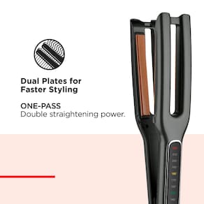 Alisador de placa dupla REVLON Double Straight Copper + Ceramic, placas de quatro 1/2 polegadas, preto