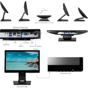 De fácil portabilidade, instalação e utilização o AIO PDV HB-16S2 é totalmente integrado, sua tela de 16" proporciona imagens nítidas, o touch screen capacitivo possibilita maior domínio e agilidade sobre as funções nele desenvolvidas. Sua base inclinável proporciona mais conforto e liberdade durante o período de uso, o seu design clean e moderno na cor preta se adapta a qualquer ambiente. Painel e suporte resistente de ABS, alto-falantes e WIFI integrados também são algumas das características deste incrível produto, que é a escolha ideal, tanto para uso doméstico quanto empresarial.