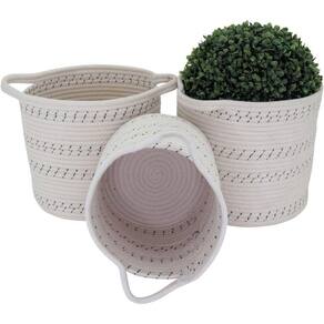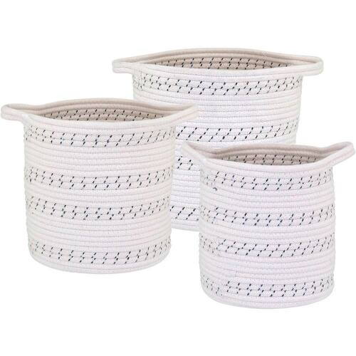 Allegra Cesta Tecido Branco 3pç As cestas oferecem muitas versatilidades. Elas são charmosas e podem compor diversos ambientes e cômodos de maneira muito prática. São ideais para decorar e organizar objetos. São produzidas com tecidos brancos, compostos de 80% de poliéster e 20% algodão. Cada cesta possui 2 alças que possibilitam uma empunhadura segura.