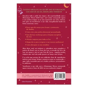 O Almanaque Wicca 2025 é um guia abrangente e essencial para praticantes e entusiastas da Wicca, oferecendo uma rica variedade de informações e práticas para o ano. Ideal tanto para iniciantes quanto para praticantes experientes, o livro explora as festividades sazonais, os ciclos da natureza e os princípios fundamentais da espiritualidade wiccana, proporcionando orientações valiosas para aprimorar a conexão com o divino e a natureza. Nesta 22ª edição, o almanaque inclui instruções para rituais, feitiços e meditações, além de informações sobre a Lua, como suas fases influenciam as práticas wiccanas e como aproveitar essas energias em favor do crescimento pessoal. Os leitores encontrarão também reflexões sobre a ética wiccana, sugestões de correspondências herbais, cristais e muito mais.