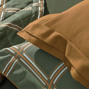 De toque supremo com experiência sensorial do cetim 300 fios, produzido com 100% algodão egípcio de fibras longas. Esse tecido sedoso, de toque extremamente macio e com cintilância natural, por conta do entrelaçamento dos fios; além disso, sua estrutura maleável proporciona um caimento perfeito na cama. O algodão egípcio tem propriedades hipoalergênicas e altamente respiráveis, que regulam a temperatura corporal e proporcionam uma noite de sono perfeita. Suas fibras longas impedem a formação de bolinhas e garantem fios mais finos, criando um tecido muito mais suave e confortável. A almofada Bernardo apresenta tonalidade tinta bronze, aba dupla com 4 abas de 4cm e 4 abas de 6cm. Perfeita para coodenar com as outras peças da coleção! Foto meramente ilustrativa.