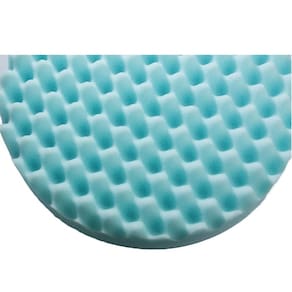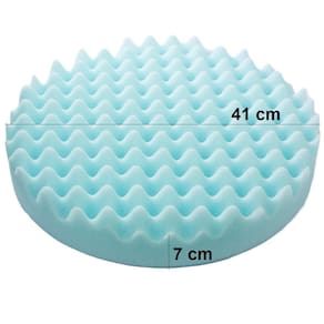 Produto: almofada oval caixa de ovo Cor: azul claro Material: espuma poliuretano 28 Peso: 220 gramas. Embalagem com 1 almofada Medidas: 41 cm x 7 cm