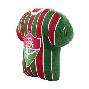 Almofada no formato de camisa do Fluminense com 40 x 17 x 45 cm de dimensão, nas cores e costurada com escudo do Fluminense.