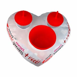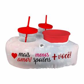 ALMOFADA PORTA PIPOCA 2 COPOS EM FORMATO DE CORAÇÃO Almofada porta pipoca com compartimentos para dois copos e um balde de pipoca. Ótima lembrancinha para casais apaixonados!!