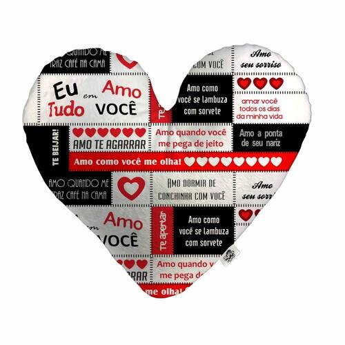Almofada Coração Pelúcia Eu Amo Tudo Em Você Namorados Tamanho:P