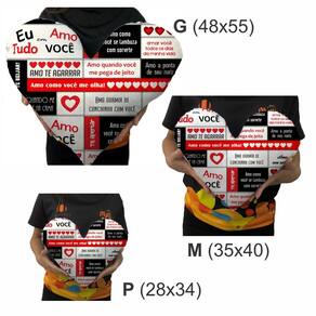DESCRIÇÃO DO PRODUTO1. Almofadas no formato de coração em 3 tamanhos: Tamanho P 28x34cm, tamanho M 35x40cm e tamanho G 48x55cm;2. Impressão / estamparia de alta qualidade, em tecido pelúcia, super macio, antialérgico e muito sedoso.
