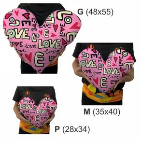 DESCRIÇÃO DO PRODUTO1. Almofadas no formato de coração em 3 tamanhos: Tamanho P 28x34cm, tamanho M 35x40cm e tamanho G 48x55cm;2. Impressão / estamparia de alta qualidade, em tecido pelúcia, super macio, antialérgico e muito sedoso.