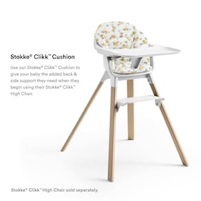 - COMBINE COM A CADEIRA ALTA STOKKE CLIKK - A almofada Clikk é feita para caber na leve e durável cadeira alta Clikk, que inclui uma bandeja e um arnês. A cadeira é fácil de limpar e a bandeja pode ser lavada na máquina de lavar louça.