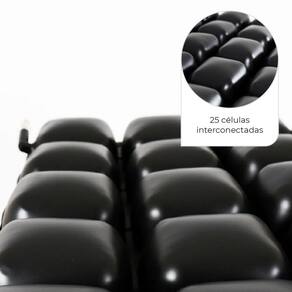 -Almofada impermeável; -Melhor custo-benefício; -Sistema de fixação de alças duplas com tiras autocolantes; -Capa lavável em máquina de lavar, pode ser desinfetada; -Distribuição efetiva da pressão com regulagem; -Possui válvula de inflação de latão niquelado, capa e laterais confeccionados em material sintético e base reforçada; -Favorece a circulação sanguínea nas regiões de apoio; -Ação que garante melhor distribuição dos pontos de pressão do usuário; -Anatomicamente adaptável: cada célula é moldada de forma independente para se adaptar com precisão a anatomia; -Fabricada em TPU, evitando irritações na pele e possuindo excelente elasticidade, alta resistência ao desgaste e maior durabilidade; -Aprovada por instituições de reabilitação em todo Brasil; -Indicada por 9 em cada 10 terapeutas ocupacionais; -Testada em sensor de pressão por mercúrio, comprovando o alívio dos pontos de pressão.