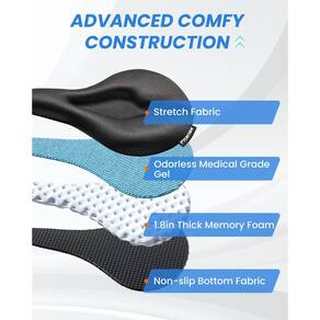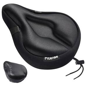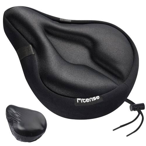 Fitense Almofada de assento de bicicleta, capa de assento de bicicleta larga confortável para homens e mulheres, capa acolchoada para assento de bicicleta ergométrica, compatível com Peloton, bicicletas estacionárias de montanha, internas e externas, preta - Projetado para assentos largos de bicicleta: tamanho de 28 x 25 cm de largura, ajuste perfeito para bicicleta ergométrica peloton spin class nordictrack indoor ergométrica e também adequada para mountain mountain MTB road commuter cruiser ciclo confortável - Tecido antiderrapante atualizado: camada superior de tecido de lycra, camada de enchimento de gel + espuma de memória, tecido antiderrapante de camada inferior, tecido de camada envolvente + alça, camadas científicas para conforto e durabilidade. Em comparação com o tecido antiderrapante de silicone tradicional, não machuca o selim autêntico e evita deixar marcas de instalação para proteger o selim autêntico - Capa de assento de bicicleta de espuma viscoelástica confortável: espuma viscoelástica de 4,5 cm de espessura e enchimento de gel de grau médico, absorve efetivamente o choque e reduz a pressão nos ossos do assento, aumenta o tempo de condução e melhora a experiência de pilotagem - Design ergonômico: o assento da bicicleta amortece Fitense área do períneo recuada, diminui a pressão no períneo e nos ossos sentados e, ao mesmo tempo, é mais ventilado e respirável - Design firme e justo: tecido elástico envolvente; firmemente enrolado ao redor do selim autêntico, evitando problemas de afrouxamento durante o processo de pilotagem