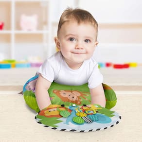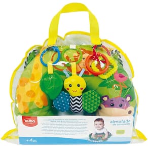 Essa almofada estimula a coordenação motora, pois possui diversos brinquedos ao alcance do bebê. Ele terá à disposição um mordedor, argolas texturizadas, uma abelhinha com barulho de amassadinho, além de cores e estampas vibrantes. O painel super colorido com um bichinho e barulho de amassadinho também é perfeito para o bebê tocar.