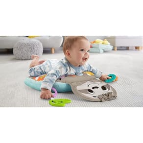 O design ergonômico ajuda a fortalecer os músculos, incentivando que o bebê fique na posição ideal para engatinhar. Possui mordedor, formas texturizadas, som de amassadinho, todos super coloridos para entreter e estimular os sentidos do pequeno.