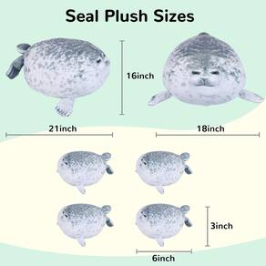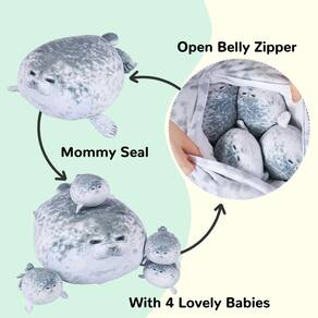 Almofada Chubby Blob Seal Pelúcia Bichos de Pelúcia Fofos - Este travesseiro gordinho de vedação tem enchimento de algodão PP de alta qualidade e tecidos amigáveis à pele dão a você uma melhor sensação de toque na pele. Chique, macio e parece que você está abraçando um algodão doce. - Busque uma vida simples e confortável, abrace este adorável travesseiro de pelúcia de animal de foca, aconchegando-se na cama ou sofá, traga a você um toque de doçura e diversão neste inverno! - Este travesseiro de brinquedo de pelúcia com selo pode ser utilizado como travesseiro de abraço, travesseiro de soneca, travesseiro de cochilo de escritório ao meio-dia, brinquedos de pelúcia, atende a todas as suas expectativas. - Esta boneca de pelúcia é adequada como presente para o Natal, Dia dos Namorados, Festival da Primavera e outros feriados para namoradas, namorados ou família, macia e fofa, deixe as pessoas colocá-la no chão. - Incluído na embalagem: 1 foca para mamãe + 4 focas de bebê.