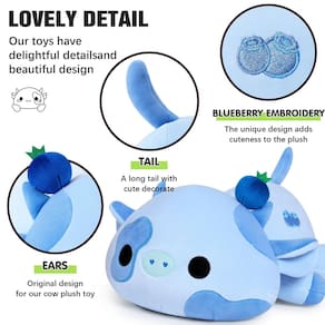 Sugerimos que você limpe com suas mãos. Para manter a cor e a vibração, basta limpar no local conforme necessário. O material do nosso brinquedo não é fácil de sujar. - Material: A vaca de mirtilo de pelúcia é preenchida com algodão elástico que é mais macio do que o comum, tecidos agradáveis à pele dão a você uma melhor sensação de toque na pele, tornam o travesseiro muito macio e confortável. - Tamanho: 30,5 cm (a medição manual pode ter um erro de 1,2 a 3,8 cm). O travesseiro tem um tamanho adequado que é uma sensação perfeita para abraçar. - Adequado: Crianças/Família/Amigos/Parentes não podem perder! Ótima opção para abraçar travesseiro de cama para adultos e crianças também. Adequado para quarto, sala de estar, família, escritório, etc. - Melhor presente: basta surpreender seus amigos com este travesseiro de brinquedo de pelúcia adorável, exclusivo e macio. - Observação importante: o gatinho de pelúcia vem por embalagem a vácuo, então fica plano, depois de desembalar, faça algo para deixar o algodão solto e ele se recuperará totalmente dentro de 1 a 2 dias, coloque-o no sol ou na secadora, ele se recuperará melhor, obrigado pela sua compreensão.