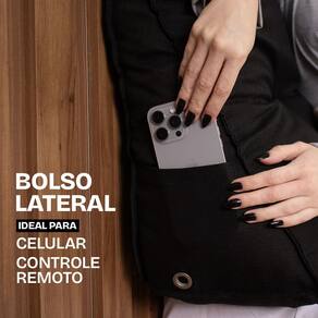 Bolsos laterais funcionais: espaço para guardar celular ou controle remoto, com saída para carregador que facilita seu uso no dia a dia.