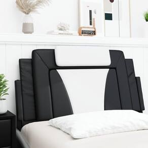 -?Design elegante?: almofada de cabeceira elegante com acabamento em couro sintético preto e branco para uma aparência de quarto moderna