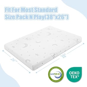 Design de dupla face. O lado mais firme é adequado para bebês, apoia a coluna e facilita o crescimento saudável. O lado viscoelástico é adequado para crianças pequenas, protegendo a coluna e aliviando a pressão corporal. Segurança e qualidade confiáveis. Uma capa externa protege o colchão contra vazamentos de fraldas, leite derramado, poeira, sujeira e muito mais. O protetor é feito de algodão orgânico, é suave para a pele do bebê, hipoalergênico, respirável, lavável e perfeitamente seguro para o meio ambiente. Ideal para o desenvolvimento de recém-nascidos. Macio e respirável, o chapéu se molda aos contornos do pescoço, costas e corpo do bebê. Ótimo para postura e crescimento. Os bebês podem dormir, se mover e rolar com segurança; eles também se beneficiam da rigidez da almofada ao aprenderem a se levantar, engatinhar e ficar em pé. Acreditamos que um bom colchão pode fazer toda a diferença para uma boa noite de sono, especialmente para bebês. Nosso foco simples está no seu bebê e, com características como roupa de cama macia e respirável, ele terá uma noite de sono mais segura, para que se sinta mais descansado e pronto para brincar. - Conforto para dormir - O colchão NEKSUN pack and play foi especialmente projetado para proporcionar a experiência de sono mais confortável para bebês. Este colchão para bebês é feito de espuma viscoelástica e espuma normal, macio e respirável, ajuda a proteger a coluna vertebral do bebê e a manter o corpo do bebê, trazendo conforto às costas, pernas e coluna do bebê para garantir um sono mais repousante e confortável. - Pack N Play feito sob medida — As dimensões deste colchão viscoelástico são 38 x 26 polegadas, serve apenas para o pack n play. Ele apresenta um design de borda arredondada para garantir um ajuste perfeito com os quatro cantos do berço, reduzindo as lacunas e proporcionando um espaço mais seguro para brincar e dormir para o bebê. - Capa jacquard ultramacia — A capa do colchão pack and play é feita de tecido respirável, reduzindo o ruído, e o design com zíper facilita a remoção e a lavagem na máquina. O lindo universo, as estrelas e o padrão da lua na capa são a escolha perfeita para decorar o quarto de um bebê. - Fácil de transportar - O colchão pack n play pode ser utilizado em ambientes fechados e também pode ser facilmente transportado para viagens. O mini colchão de berço é muito leve, permitindo que você o enrole e coloque no carro, para que o bebê tenha um sono de qualidade enquanto viaja. Você pode levar conforto aonde quer que vá - Para bebês - Os colchões pack n play têm certificação de espuma, garantindo o melhor em saúde e segurança. Seja para uma soneca curta ou uma noite inteira de sono, o colchão de berço pode proporcionar uma experiência de sono confortável para os bebês, ajudando-os a crescerem saudáveis. Leve nosso colchão pack play para casa e crie um espaço agradável para dormir para seus bebês!