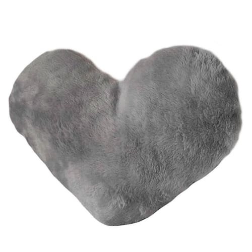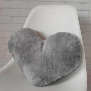 Almofada de coração pelúcia pelo curto cinza para decoração