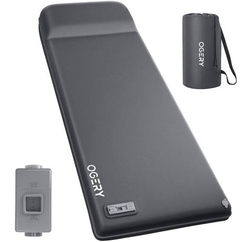 Almofada de dormir de acampamento autoinflável OGERY — O máximo conforto para aventuras ao ar livre One-Touch Inflation Magic Diga adeus às bombas manuais! Nosso colchão de acampamento possui uma bomba inteligente embutida que infla totalmente em apenas 40 segundos com um único toque de botão. A função de deflação rápida torna a embalagem igualmente fácil, pronta em 90 segundos. Luxuoso Memory Foam Comfort de 3,15" Experimente um sono com qualidade de hotel ao ar livre com nossa almofada de dormir ultra-grossa para acampar. A espuma viscoelástica premium se adapta ao seu corpo, enquanto o tecido de malha elástica 50D para uso externo oferece suporte durável durante toda a noite. Bomba removível e recarregável A poderosa bomba operada por bateria de 7,4 V 1200 mAh é removível e recarregável. Chega de procurar tomadas elétricas ou carregar equipamentos extras, basta a conveniência de acampar. Perfeita para campistas medindo 76,77" x 26,38" quando inflada (dobra para 27,56" x 10,63"), esta almofada de dormir de acampamento oferece conforto espaçoso enquanto permanece portátil. Com 5,95 libras, é ideal para acampar de carro, viagens de trailer ou roupa de cama para hóspedes. Desempenho em todas as estações Com um excepcional valor R de 9,5, nossa almofada de dormir isolada oferece uma regulação superior da temperatura, mantendo você aquecido no inverno e confortável no verão. Atualize sua experiência de sono ao ar livre hoje mesmo! A almofada de acampamento autoinflável OGERY oferece conforto incomparável onde quer que suas aventuras o levem.