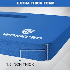 WORKPRO Almofada de ajoelhar, azul - Amortecimento superior: A almofada de ajoelhar WORKPRO é construída com espuma ultra-espessa de alta densidade, a almofada de 3,8 cm de espessura oferece 70% de absorção de choque para o máximo de conforto, tornando-a perfeita para trabalhos de ajoelhar de longo prazo - À prova d'água e resistente à sujeira: a almofada de espuma para joelhos é feita de NBR, que tem forte resistência a óleo e abrasão; projetada para suportar pedras, entulho e umidade, esta almofada é resistente à água e absorve o mínimo de água enquanto você estiver fora em solo úmido; A absorção mínima de água garante limpeza fácil e secagem rápida - Design humanizado: a superfície lisa e macia adiciona mais conforto aos seus joelhos, e o uso a longo prazo não causará marcas nos joelhos; o fundo texturizado evita escorregões e deslizamentos durante o uso, garantindo sua segurança e conforto - Durabilidade de longa duração: o design espesso e sólido da joelheira pode suportar o uso prolongado, com grande resistência à compressão e uma espuma espessa que não comprime ou deforma ao longo do tempo, tornando-a um investimento duradouro - Uso versátil: Com uma alça embutida, nosso tapete de joelho é ótimo para jardinagem, treino, hora do banho do bebê, exercícios e ioga, eventos esportivos, acampamento, tarefas domésticas diárias, conserto de automóveis e muito mais, é um bom presente de jardinagem para homens/mulheres