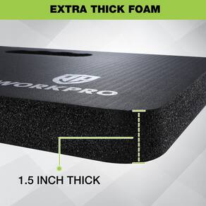 WORKPRO Almofada de ajoelhar extra grossa, amortecimento de espuma macia para joelho, tapete grande de espuma para jardinagem, banho de bebê, suprimentos de treino, 44,5 x 28 x 3,8 cm, preto - Amortecimento superior: a almofada de ajoelhar WORKPRO é construída a partir de espuma ultra-espessa de alta densidade, a almofada de 3,8 cm de espessura oferece 70% de absorção de choque para o máximo de conforto, tornando-a perfeita para trabalhos de ajoelhar a longo prazo - À prova d'água e resistente à sujeira: a almofada de espuma para joelhos é feita de NBR, que tem forte resistência a óleo e abrasão; projetada para suportar pedras, entulho e umidade, esta almofada é resistente à água e absorve o mínimo de água enquanto você estiver fora em solo úmido; A absorção mínima de água garante limpeza fácil e secagem rápida - Design humanizado: a superfície lisa e macia adiciona mais conforto aos seus joelhos, e o uso a longo prazo não causará marcas nos joelhos; o fundo texturizado evita escorregões e deslizamentos durante o uso, garantindo sua segurança e conforto - Durabilidade de longa duração: o design espesso e sólido da joelheira pode suportar o uso prolongado, com grande resistência à compressão e uma espuma espessa que não comprime ou deforma ao longo do tempo, tornando-a um investimento duradouro - Uso versátil: com uma alça embutida, nosso tapete de joelho é ótimo para jardinagem, treino, hora do banho do bebê, exercícios e ioga, eventos esportivos, acampamento, tarefas domésticas diárias, conserto de automóveis e muito mais, é um bom presente de jardinagem para homens/mulheres