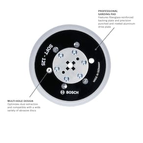 BOSCH RSM5044 Almofada de lixamento com vários furos de gancho e laço macio de 12,7 cm - Design de disco de lixamento com vários furos – otimizado para maior extração de poeira e compatível com uma ampla variedade de discos abrasivos - Almofadas macias – ideais para polimento, lixamento côncavo e convexo e lixamento fino de superfícies sólidas - Design profissional – possui placa de suporte reforçada com fibra de vidro e placa de acionamento de alumínio perfurada e rebitada com precisão - Fabricação robusta – proporciona desempenho superior e longa vida útil - Construído para lixadeira de vários furos – projetado para uso com discos abrasivos e capôs de polimento para as 5 polegadas. Lixadeira de órbita aleatória Bosch GET65-5 de modo duplo