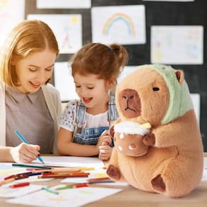 Característica: Lindo travesseiro de pelúcia Capivara Dinossauro Bebendo Leite Chá Animais de Pelúcia Capibara Pluhsies Presentes para Crianças 28 cm Travesseiros de pelúcia para crianças, Capybar, brinquedo de pelúcia macio, capybar, bichinho de pelúcia - Capivara de pelúcia: nosso bicho de pelúcia Capivara tem uma textura macia e é feito de bom tecido de algodão PP. A pelúcia capivara é fofa, macia, delicada e não irrita a pele, a linda capivara é fofa e pode acompanhar você o tempo todo - Capivara de bichos de pelúcia macios: Brinquedo de pelúcia fofo de capivara de pelúcia com chá de leite, capivara de bicho de pelúcia é incrível e muito fofa. Você vai se apaixonar por este lindo travesseiro de pelúcia de dinossauro capivara - Capivara de pelúcia grande: Usamos a linda capivara como um protótipo para tornar a capivara abafada, capivara simbolizando coragem, inteligente e poder de cura. A linda capivara de pelúcia definitivamente trará boa sorte e felicidade - Decoração de brinquedo de capivara: a capivara de pelúcia grande pode acompanhar você e seus filhos, o brinquedo de pelúcia de capivara de pelúcia também pode ser colocado como decoração em seu quarto, sala de estar, mesa, carro, escritório ou mesa para adicionar uma atmosfera acolhedora - Presentes de pelúcia capivara: a capivara de pelúcia pode ser dada como um presente para seus filhos e amigos. Bem como presentes doces para o dia das crianças, aniversário, Páscoa, Dia dos Namorados, Ação de Graças, Natal ou qualquer dia especial