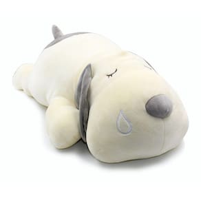 Este adorável cão tem cerca de 23,5 polegadas de comprimento e 13 polegadas de largura. É muito macio e confortável para abraçar crianças. Tamanho perfeito para levar a qualquer lugar para brincar e abraçar para dormir. E também é uma boa opção para usar na cadeira do escritório para tirar uma soneca.