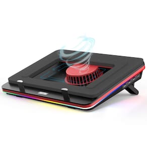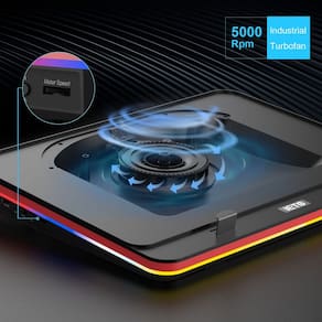 Almofada de resfriamento RGB poderosa para laptop IETS GT500 (5000 RPM) com velocidade infinitamente variável, espuma de vedação para laptop de jogos com resfriamento rápido, resfriador de laptop de 13-17,3 polegadas com hub USB de 3 portas