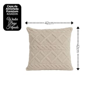 Almofada Decorativa Cheia Winter Felpudo Bege Com Enchimento 42x42cm - Jolitex