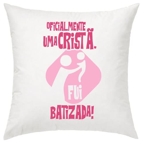 Almofada branca 30 x 30 cm em tecido Oxford 100% poliéster, estampa a toque zero em ambos os lados. Não desbota e não mancha. Zíper de Nylon e enchimento em fibra siliconada costurado em TNT. Estampas exclusivas EVANGELIZE.