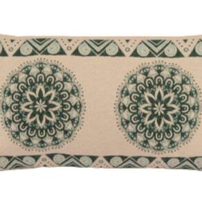 Especificações Técnicas: - Material da Capa: Tecido Jacquard 58% Algodão / 42% Poliéster - Material do Refil: Tecido 100% Polipropileno | Enchimento 100% Poliéster - Cor: Mandala Verde