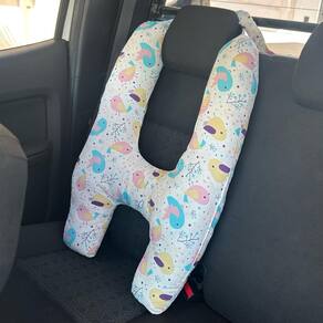 Almofada para viagem Esta almofada tem um design em forma de h que reduz a largura da parte de apoio do pescoço e permite que a cabeça descanse confortavelmente em ambos os lados, acomoda o pescoço de forma correta mesmo durante o sono oferecendo maior conforto e comodidade para as viagens. Esse apoio é ideal para viagens longas de carro, de avião ou cochilos em casa e pode ser Utilizado por crianças e por adultos, confeccionada com fibras de silicone macia e uma alça ajustável para prender no encosto de cabeça do carro para que fique fixa, perdendo o risco de escorregar. Acompanha uma almofada que pode ser Utilizado como protetora de queixo ou de pescoço para agregar ainda mais conforto. Acompanha: 01 almofada h de 72cm x 55cm medidas aproximadas 01 almofada para pescoço ou queixo com tecido adesivo Composição: Tecido: 80% algodão e 20% poliéster Enchimento: fibra de silicone macia 100% poliéster Obs.: a foto é ilustrativa. O produto pode sofrer diferenças na tonalidade de cor, dependendo da configuração da tela do seu celular ou computador brilho, contraste etc. os demais itens compostos no cenário da foto não estão inclusos. Marca: Gabriela Martin Enxovais
