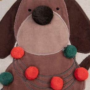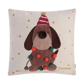 A Capa de Almofada Holiday Puppy em tricot é produzida em 100% algodão com padronagem divertida cachorro salsicha.