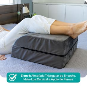 Almofada Triangular de Encosto: promove o alinhamento da coluna e mantém o tronco em posição adequada, evitando pressão abdominal.