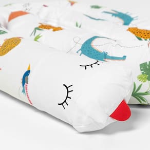 Características principais: • Capa externa em 100% algodão; • Forro interno em TNT (100% polipropileno); • Enchimento com fibra de poliéster siliconada; • Versátil: pode ser usada no berço, cama ou chão; • Macia, confortável e segura para o bebê.