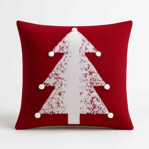 Transforme a decoração da sua casa neste Natal com a Almofada Natalina Pinheiro 50x50 Vermelho/Branco Big Tricot. Desenvolvida em tecido tricotado de alta qualidade, ela une conforto e estilo, trazendo o aconchego dos tradicionais enfeites natalinos para sua sala ou quarto. O design exclusivo com pinheiro branco em relevo e detalhes em pompons proporciona uma textura diferenciada que valoriza qualquer ambiente.