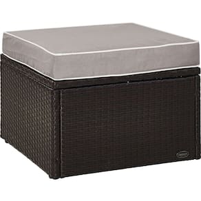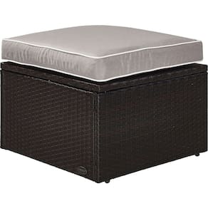 Apoio de pés otomano externo Crosley Furniture Palm Harbor Wicker para pátio, deck, varanda, marrom com almofadas cinza