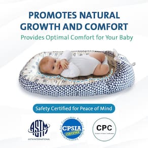 Certificação de segurança de alto nível: a espreguiçadeira ShopNest Hub é feita com a máxima segurança em mente, equipada com certificações CPC, ASTM e CPSIA para atender aos mais altos padrões de segurança para o seu recém-nascido. Feita de 100% algodão amigo da pele, esta espreguiçadeira passa por rigorosas inspeções de qualidade e verificações de produção. Os pais podem usar esta espreguiçadeira infantil portátil e respirável sabendo que seu bebê está seguro, apoiado e confortável. Tecido macio e respirável: Feita de algodão ultramacio e respirável, a espreguiçadeira ShopNest Hub oferece proteção total de 360 graus com um amortecedor espesso de suporte. O colchão aprimorado oferece suporte ideal para as costas, incentivando o desenvolvimento saudável da coluna. Projetada para imitar o calor do abraço de uma mãe, esta espreguiçadeira dá ao seu recém-nascido um espaço aconchegante e seguro para se aconchegar e descansar supervisionado. Portátil e pronta para viagem: ideal para casa e viagens, esta espreguiçadeira infantil leve pesa apenas 1,45 kg e inclui uma alça conveniente. Com dimensões de 80 x 50 x 15 cm, cabe perfeitamente em uma bolsa de viagem, facilitando o transporte para pais ocupados em movimento, seja em ambientes internos ou externos. Design de dupla face, lavável na máquina: esta espreguiçadeira versátil possui uma capa reversível com padrões elegantes em cada lado, adicionando variedade à configuração do seu berçário. A capa da espreguiçadeira é feita de algodão de alta qualidade, lavável na máquina, e seu cordão elástico ajustável e gravata borboleta permitem um ajuste personalizado conforme seu bebê cresce, adequado para idades de 0 a 24 meses. Presente perfeito para recém-nascidos e item essencial: um presente ideal para novos pais, a espreguiçadeira ShopNest Hub oferece um ambiente aconchegante e seguro que apoia o crescimento e o desenvolvimento da coluna do seu bebê. Projetada para tranquilidade, esta espreguiçadeira essencial libera as mãos dos pais enquanto garante que o bebê esteja confortavelmente aninhado, tornando-a uma escolha atenciosa e prática para qualquer recém-nascido.