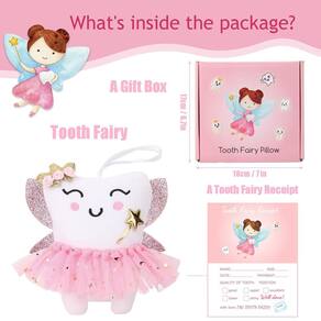 Travesseiro de fada dos dentes para meninas, presentes de fada dos dentes para meninas, travesseiro de fada dos dentes para meninas, bolsa de fada dos dentes, bolsa de fada dos dentes - Kit para um momento mágico: o conjunto inclui uma boneca de pelúcia da fada dos dentes. Prepare-se para dar ao seu filho a experiência total de conto de fadas. - Design exclusivo: mede 20 x 23 cm. A boneca tem um vestido macio brilhante e asas de glitter rosa, e há um bolso separado na parte de trás da boneca. A costura geral é delicada e firme. - Bolso grande: O bolso na parte de trás da Fada dos Dentes pode conter certificados dentários gratuitos, bem como moedas de ouro e dinheiro - Um cartão de fada dos dentes: registre e capture este marco junto com seu filho; anote a idade, a data e uma breve nota de como eles perderam o dente usando o certificado de fada dos dentes; dê uma carta para a fada dos dentes e coloque-a no travesseiro com o dente perdido - Lembrança memorável: pensando no presente perfeito para um amante de fadas? Dê a ela uma experiência mágica duradoura para sempre com nosso kit de travesseiro de fada dos dentes; mantenha experiências especiais de perda de dentes na infância em um só lugar