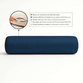 Almofada Travesseiro Bastão Tubo Rolo Dot 140cm Macia Veludo Azul Marinho - Desk Design