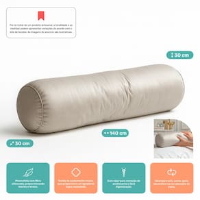 Almofada Travesseiro Bastão Tubo Rolo Dot 140cm Macia Veludo Bege - Abmaza